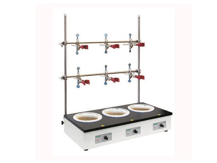 Трёхпозиционный колбонагреватель ЭКРОСХИМ ES-4100-3 предназначен для нагрева жидкостей в круглодонных колбах объемом 500 мл, с плавной регулировкой нагрева до 450°C.