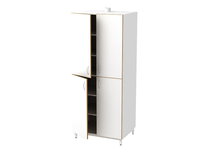 У шкафа два отделения с жёсткими полками. В обоих отделениях установлено по две полки на расстоянии 280 мм друг от друга. Полки несъёмные и оснащены жёстким задним бортиком. Он предназначен для защиты реактивов от случайного падения. Отделения плотно закрываются дверьми, оснащёнными замками.
