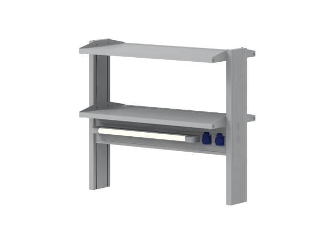2 полки в алюминиевых рамках, блок электророзеток, люминесцентная лампа.