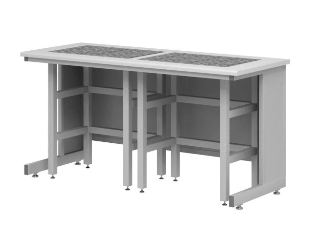 Конструктивно представляет низкий цельнометаллический лабораторный стол размером 1200х600х750 мм с интегрированным в него весовым столом, с размером столешницы из гранита 600х400 мм.