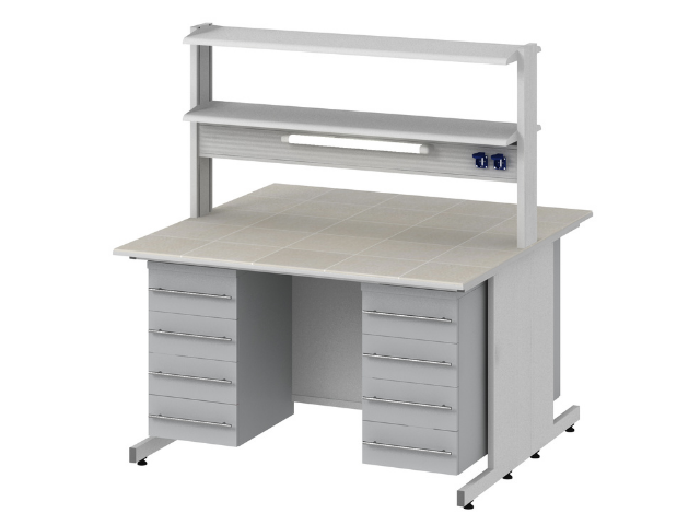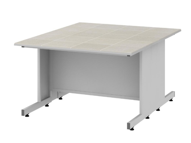 Низкий островной стол для лаборатории оснащается рабочими поверхностями из таких материалов: ламинат, trespa, керамогранит, нержавейка, durcon. Имеет стандартную высоту 750 мм.