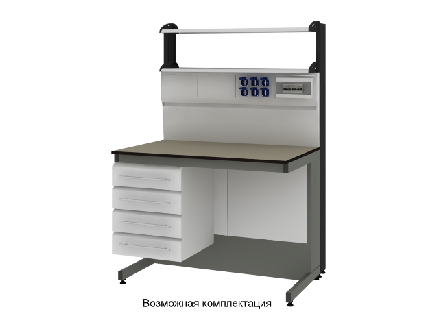 Каркас стола изготовлен из металлической профильной трубы прямоугольного сечения 60х30х2 мм. Нерабочие поверхности изготовлены из металлического холоднокатного листа. Металл покрывается химически стойкой эпоксиполиэфирной порошковой краской. Боковые опоры столы С-образного вида. Конструкция стола позволяет беспрепятственное крепление технологического стеллажа (поставляется отдельно), подвесных тумб различной конфигурации. Стол в собранном виде выдерживает статическую нагрузку 250 кг при условии равномерного распределения нагрузки по рабочей поверхности стола.