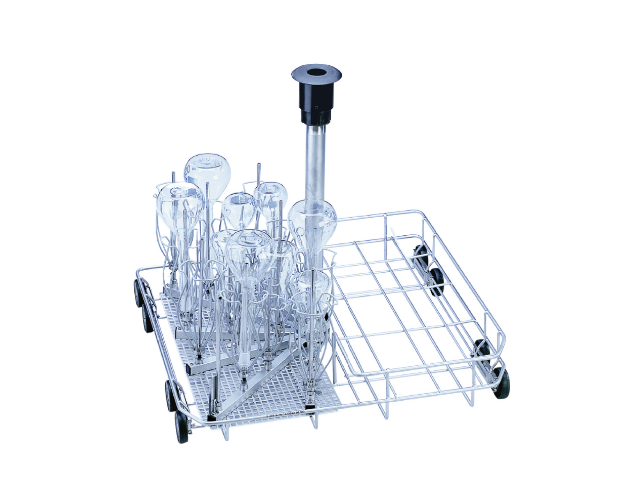 Тележка для оптимальной загрузки стеклянной посуды с узким горлышком.