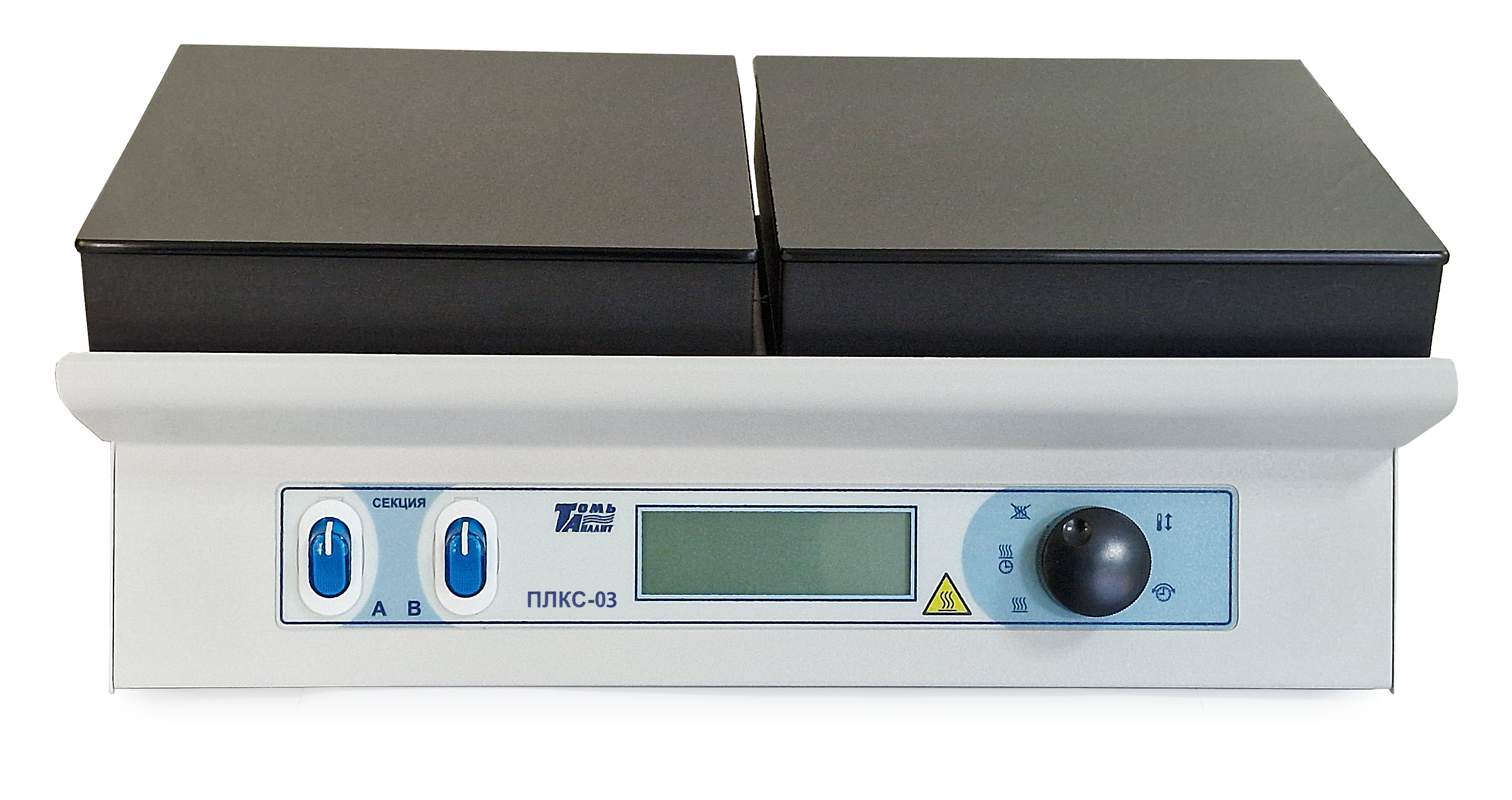 Плита ПЛКС-03 имеет графический дисплей, на котором отображаются текущая и заданная температура нагревательных поверхностей, а также заданное время и время до окончания нагрева.
