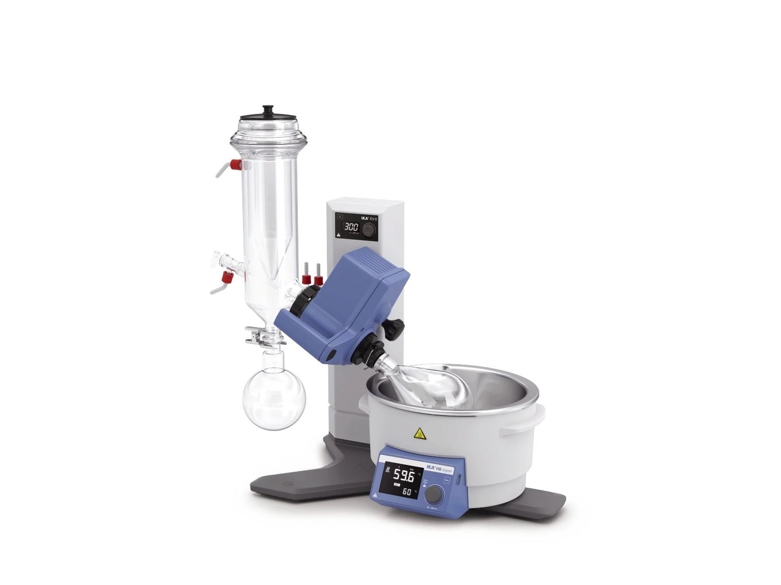 Цифровые дисплеи скорости вращения и температуры нагревательной бани обеспечивают оптимальное управление всеми процессами дистилляции.
