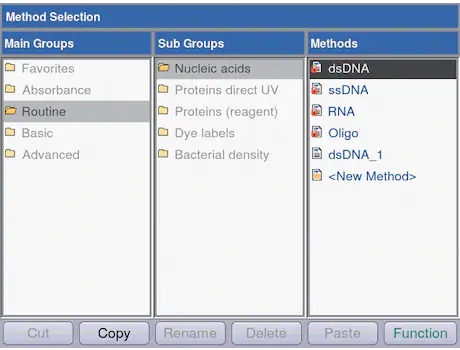 • Спектральный график для отображения чистоты пробы с автоматическим расчетом соотношения.