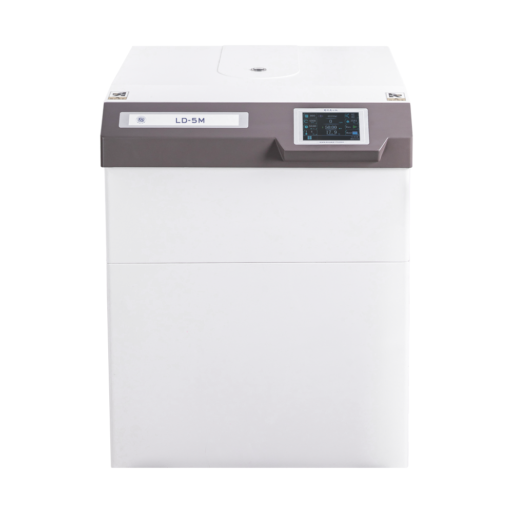 LD-5M — напольная охлаждаемая центрифуга, широко используемая в фармацевтических производствах, банках крови, биохимических и биотехнологических лабораториях, а также в научно-исследовательских организациях. Максимальная загрузка — 4×800 мл. Возможна работа с качающимися роторами различного объёма, роторами для микропланшетов и роторами для пробирок с кровью.
