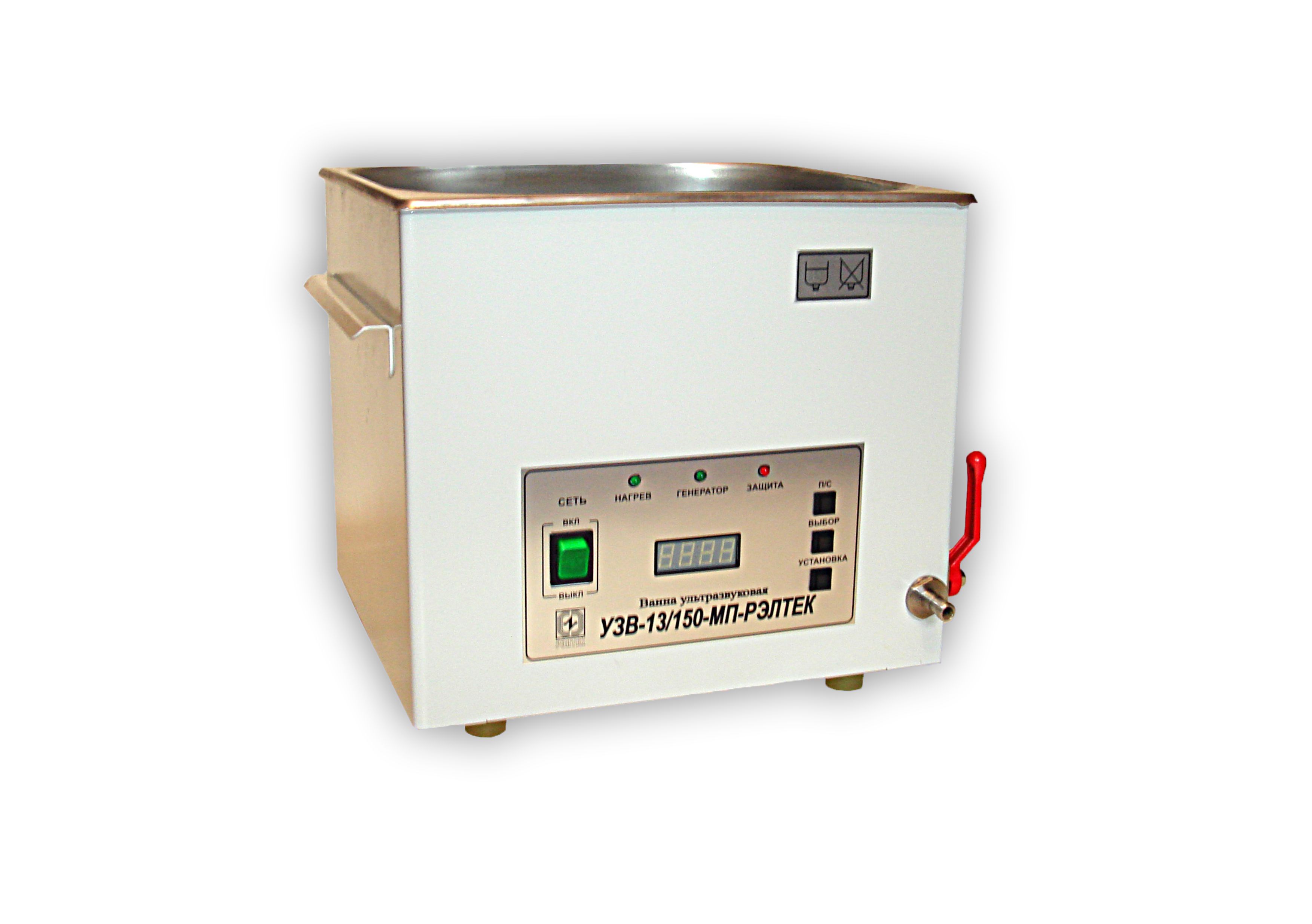 Ультразвуковая ванна УЗВ-13/150 МП (13,5л, 22кГц; микропроцессорная, таймер, нагрев, с крышкой и корзинкой).