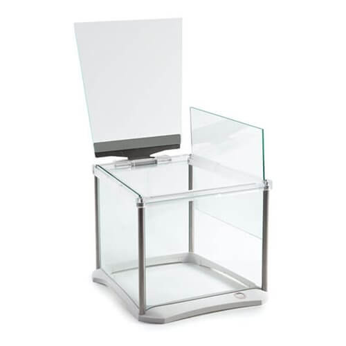 • Стеклянный кожух с откидной/сдвижной верхней дверкой.