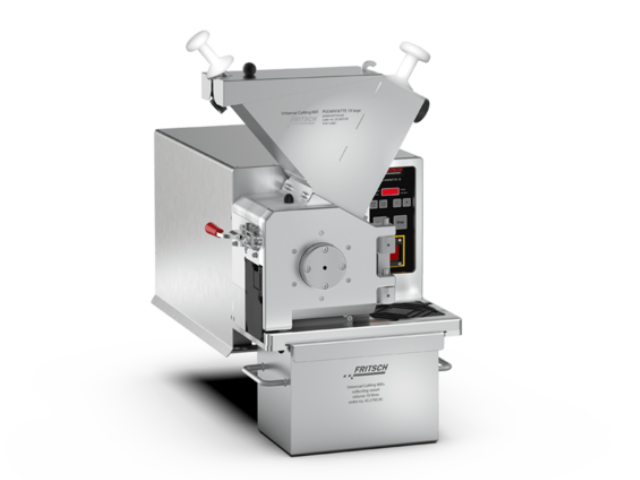 PULVERISETTE 19 large - мощная низкоскоростная универсальная режущая мельница для быстрого измельчения твердых, жестко-эластичных и чувствительных к температуре материалов и пластмасс с максимальным размером загружаемого материала 120 x 85 мм и производительностью до 85 л /ч с низкой частотой вращения 50-700 об/мин и необслуживаемым трехфазным двигателем с преобразователем частоты мощностью 2,8 кВт.