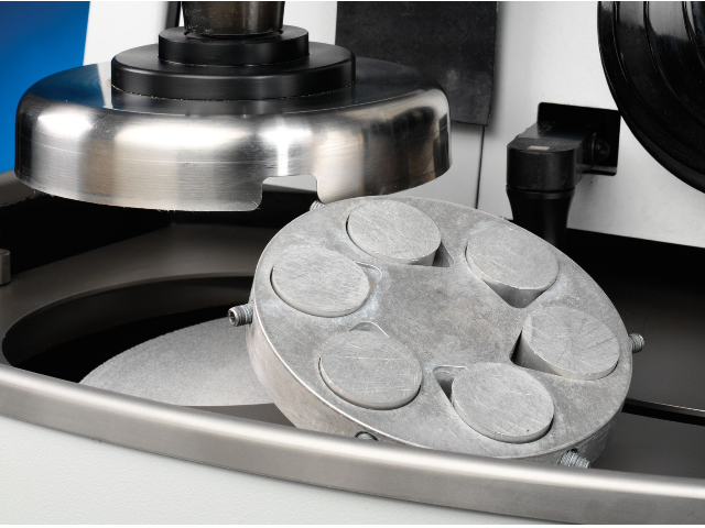 Высокопроизводительный комплекс станков для шлифования и полирования образцов в держателях. Станки спроектированы для интенсивного использования, пробоподготовки крупных образцов или большого количества образцов. Комплекс состоит из мощного скоростного высокопроизводительного шлифовального станка с камнем для быстрого выравнивания и высокопроизводительного шлифовально-полировального станка.