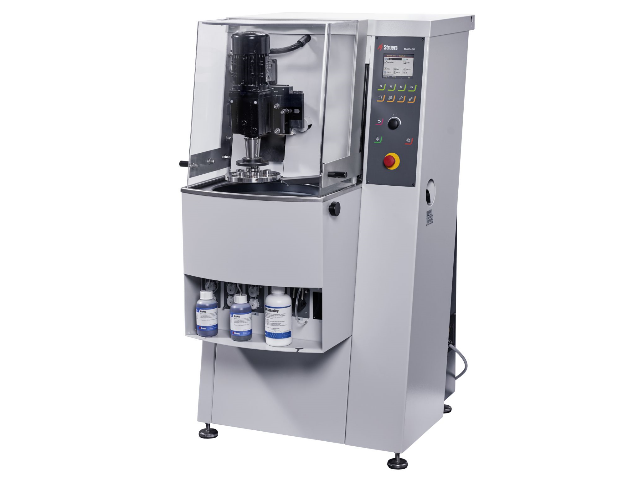 Высокопроизводительный комплекс станков для шлифования и полирования образцов в держателях. Станки спроектированы для интенсивного использования, пробоподготовки крупных образцов или большого количества образцов. Комплекс состоит из мощного скоростного высокопроизводительного шлифовального станка с камнем для быстрого выравнивания и высокопроизводительного шлифовально-полировального станка.