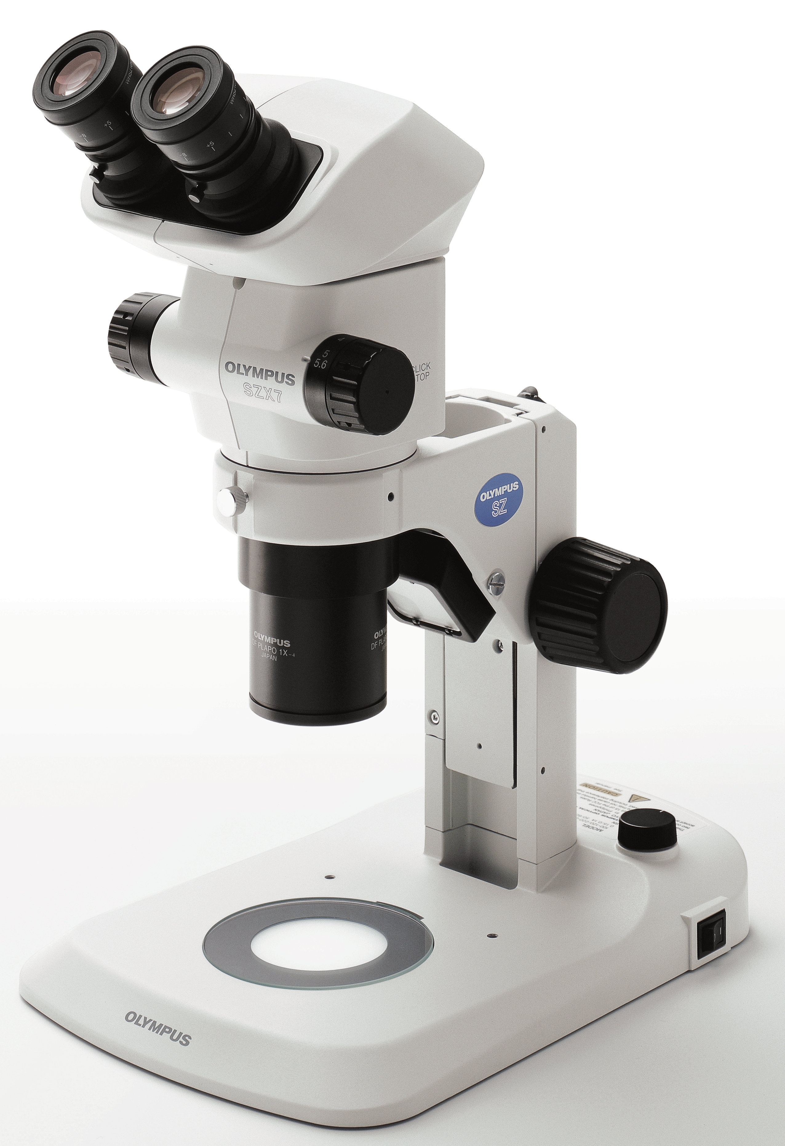 OLYMPUS SZX7 — бюджетный стереомикроскоп с возможностью усовершенствования. Модель имеет большое количество вариантов осветителей, штативов, объективов и других аксессуаров, а оптическая схема позволяет встраивать в микроскоп дополнительные модули, например коаксиальный осветитель для исследования отверстий, фотоадаптеры и светоразделители и т.д.