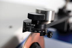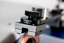 Режущий рычаг опирается на набор прецизионных подшипников, а не на вал микрометра, что обеспечивает точное и повторяемое позиционирование образца.