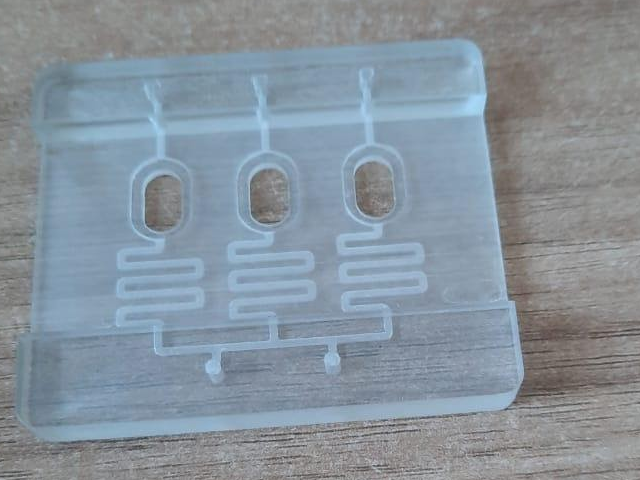 Сверху над камерами находятся проточные каналы, которые необходимы для непрерывной подачи питательных веществ. Два входа и конструкция чипа разбавляют лекарственные препараты на три разные концентрации. Клетки внутри гидрогелей подвергаются воздействию разных концентраций добавленных растворов или лекарств.