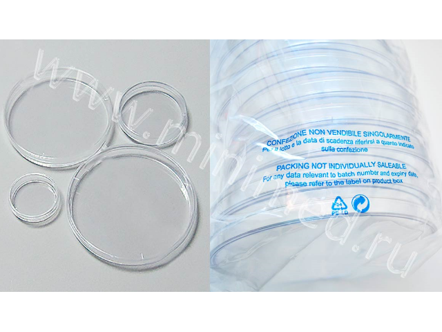 Предназначена для микробиологических исследований. Изготовлена из полистирола высокой прозрачности. Односекционная, с тремя вентиляционными опорами. Подходит для использования в автоматических машинах розлива питательных сред. Стерилизуется ионизирующим излучением (Бета-лучи). Апирогенна.