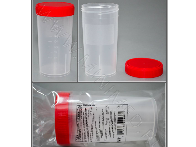 Контейнер с завинчивающейся крышкой обеспечивает полную герметичность при транспортировке биологического материала. Материал контейнера - полипропилен, крышки - полиэтилен. Имеет градуировку и матовое окошко для записи. Стерильный.