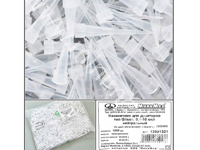 Тип Gilson. Совместимость с дозаторами: Gilson (Pipetman P), Finnpipette, Ленпипет (1, 5, 10), Biohit (Prolline), Eppendorf, Socorex (Acura), HTL (Discovery, Labmate), Nichiryo, Brand, Volvac, Accumax, Rainin, Grainer, DSG, Elkay, Genex, Jencons.