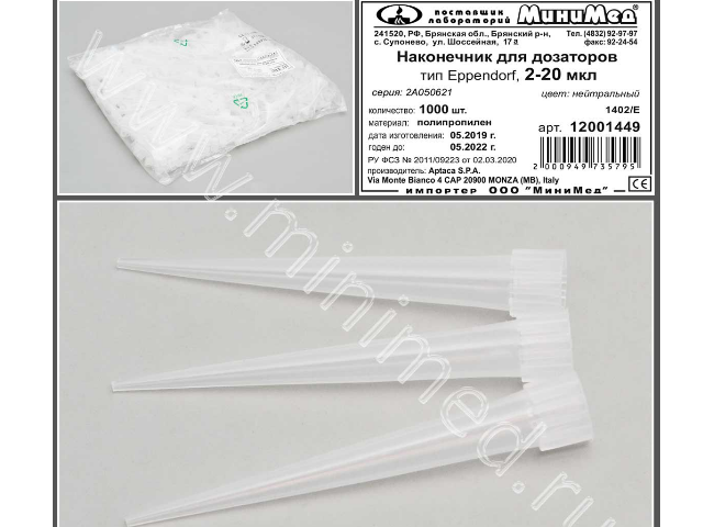 Тип Eppendorf. Совместимость с дозаторами: Eppendorf, Finnpipette, Gilson (Pipetman P20), HTL (Discovery), Nichiryo,Thermo Scientific