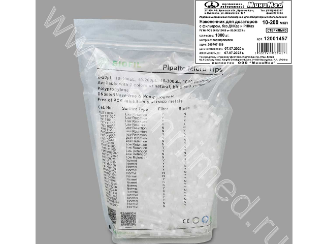 Наконечники предназначены для отбора и переноса проб с помощью дозаторов при проведении ПЦР-анализа. Наконечники стерильные, стерилизованы гамма-облучением. Наличие фильтра позволяет снизить риск загрязнений и ложность результатов, вызванных аэрозольной контаминацией наконечников. Градуированные (20-50-100-200 мкл). Наконечники без ДНКазы, РНКазы и пирогенов.