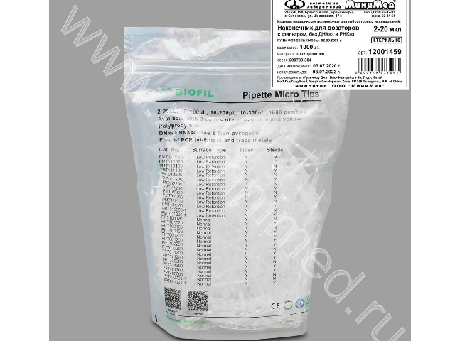 Наконечники предназначены для отбора и переноса проб с помощью дозаторов при проведении ПЦР-анализа. Наконечники стерильные, стерилизованы гамма-облучением. Наличие фильтра позволяет снизить риск загрязнений и ложность результатов, вызванных аэрозольной контаминацией наконечников. Градуированные. Наконечники без ДНКазы, РНКазы и пирогенов.