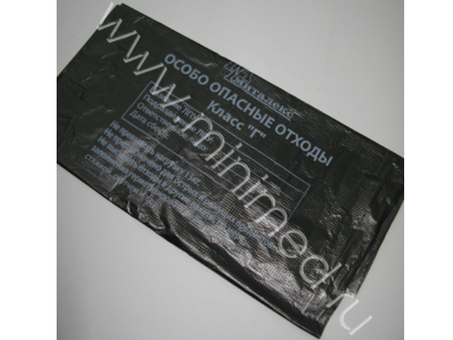 Предназначен для сбора просроченных лекарственных средств, отходов от лекарственных и диагностических препаратов, дез. средств, не подлежащих использованию с истекшим сроком годности, цитостатиков и других химпрепаратов, ртутьсодержащих препаратов, приборов и оборудования. На пакете имеется информационное окно для обозначения учреждения, подразделения, даты и фамилии ответственного за сбор отходов лица (поверхность пакета позволяет производить заполнение информационного окна шариковой ручкой). На изделии нанесена ссылка на ТУ, краткая информация о производителе с адресом, контактными телефонами.