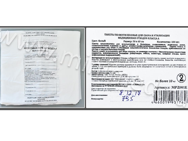 Предназначен для сбора неопасных, пищевых, нетоксичных отходов. Может использоваться в административно- хозяйственных помещениях, пищеблоках, внекорпусных территориях; палатах отделений, кроме инфекционных, кожно-венерологических, микологических. На пакете имеется информационное окно для обозначения учреждения, подразделения, даты и фамилии ответственного за сбор отходов лица (поверхность пакета позволяет производить заполнение информационного окна шариковой ручкой). На изделии нанесена ссылка на ТУ, краткая информация о производителе с адресом, контактными телефонами. Плотность пакета 13 мкм.