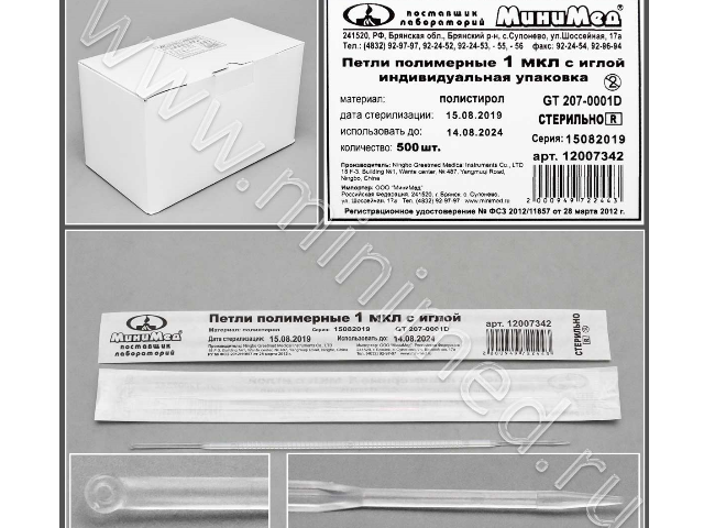 Петли полимерные 1 мкл с иглой,стер.,п/с, инд.уп./ 500/ 5тыс.шт