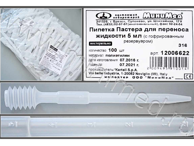 Предназначена для капельного дозирования, переноса жидкостей, пипетирования, а также транспортировки и хранения жидких реактивов. Является удачной заменой традиционным пипеткам с резиновыми грушами или стеклянным пастеровским пипеткам. Имеет градуировку, позволяющую оценить объем набранной жидкости, и обладает сильной всасывающей способностью благодаря гофрированному герметичному резервуару.