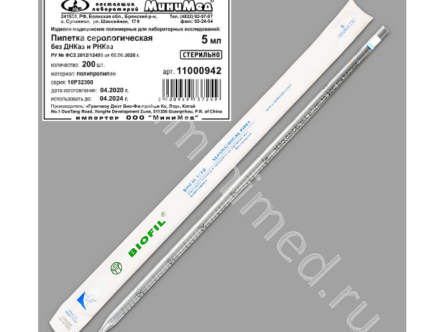 Пипетка серологическая 5 мл.,стерильная,апирогенная,без Днказ/Рнказ,инд.уп./уп.200 шт.