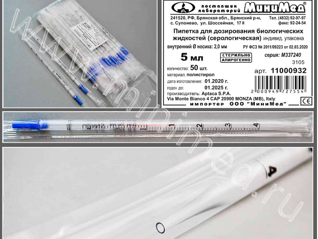 Пипетка д/дозирования биологических жидкостей (серологическая) 5 мл.,стерильная, апирогенно, инд.уп.,уп.50 шт./кор.200,п/с