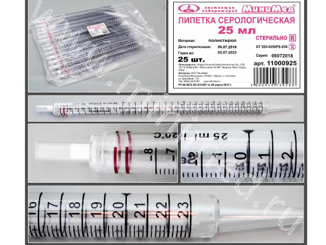 Пипетка серологическая 25 мл.стерильная,уп.25 шт., п/с