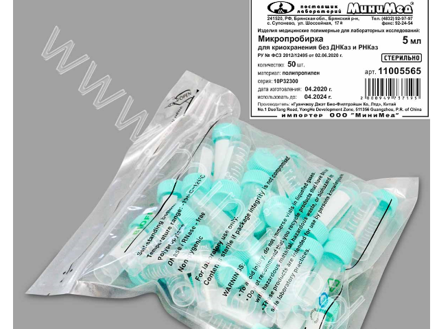 Микропробирка для криохранения 5 мл, с основанием,стерильная, без ДНКаз и РНКаз,п/п, уп.50 шт./кор.500шт.