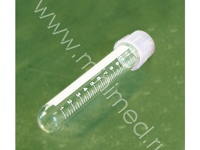 Предназначена для забора и хранения биологических жидкостей от больных при проведении санитарно-бактериологических исследований в медицинских учреждениях. На пробирку нанесена белая маркировка до объема 12 мл, имеется полоса для записи. Двухпозиционная пробка позволяет при легком нажатии обеспечить проветривание содержимого при исследование аэробов, при сильном нажатии – герметичность закрытия при исследовании анаэробов. Относительная центробежная сила, действующая на пробирку, не должна превышать 1400 g.