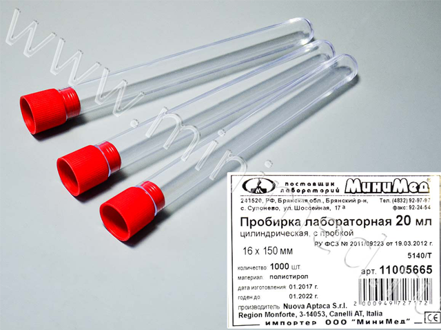 Предназначена для отбора проб, проведения химических, биологических, микробиологических анализов, в малых объемах химических реакций. Изготовлена из прозрачного полистирола, герметично укупоривается красной пробкой. Нестерильная. Относительная центробежная сила, действующая на пробирку, не должна превышать 4500 g.