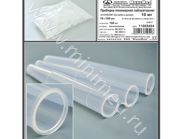 Пробирка предназначена для биологических жидкостей. Изготовлена из полипропилена. Без крышки. Имеет круговую градуировку для определения ориентировочного объема (0,5-1,0-2,5-5,0-10,0 мл).