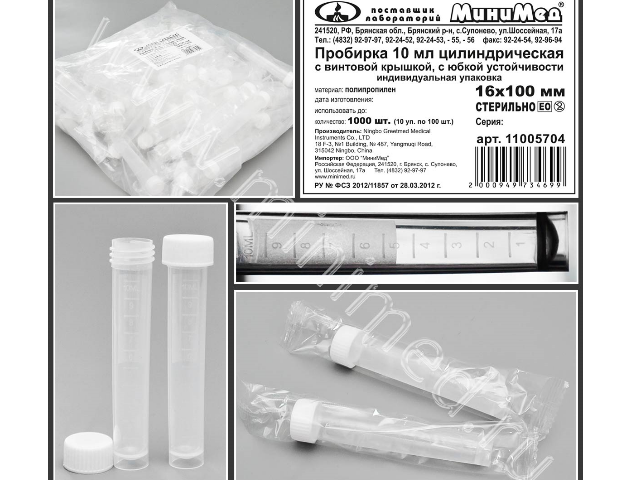 Предназначена для взятия, хранения и транспортировки образцов биоматериалов в целях дальнейших диагностических исследований в клинических лаборатоиях. Изготовлена из полипропилена, герметично укупоривается винтовой крышкой. На пробирках нанесена четкая градуировка и матовое окошко для записи. Имеют юбку устойчивости. Относительное центробежное ускорение не более 6000 g.