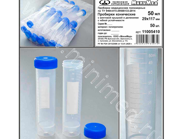 Пробирка коническая с «юбкой», предназначена для центрифугирования биологических и иных жидкостей. Пробирка закрывается винтовой крышкой, снабжена юбкой устойчивости (для удобного ее размещения в вертикальном положении). Деления нанесены белой краской, устойчивой к стиранию. Так же имеется поле для записи. Пробирка коническая изготовлена из полипропилена, что позволяет автоклавировать ее в стандартном режиме. Относительное центробежное ускорение 3000g