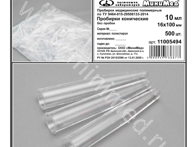 Пробирка предназначена для отбора, хранения и транспортировки образцов биоматериалов в целях дальнейших диагностичеких исследований в клинических лабораториях. Изготовлена из полистирола. Без пробки.