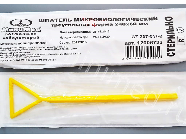 Шпатель микробиологический, треугольная форма,240*60 мм,стер.,п/п,инд.уп.,уп.100/1000шт