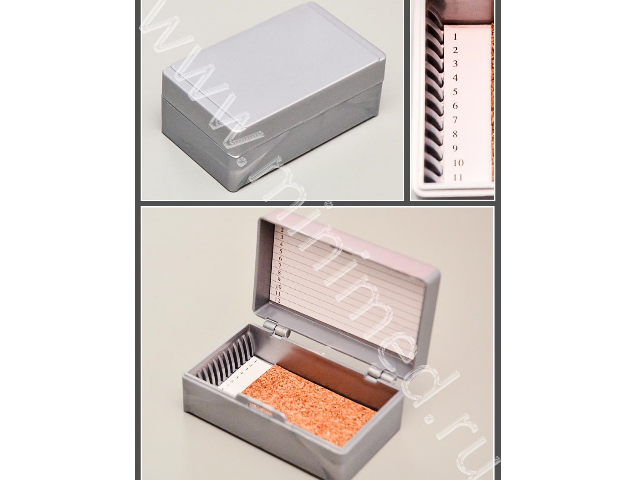 Штатив-бокс предназначен для хранения микропрепаратов на предметных стеклах размером 76 х 26 мм, толщиной 1 мм. Имеет подложку из прессованной пробки, нумерованные ячейки и поля для записи. Изготовлен бокс-штатив из полистирола. Индивидуальная упаковка. Рабочий диапазон температур - от -30 до +60°С.