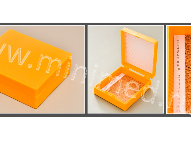 Штатив-бокс предназначен для хранения микропрепаратов на предметных стеклах размером 76 х 26 мм, толщиной 1 мм. Имеет подложку из прессованной пробки, нумерованные ячейки и поля для записи. Изготовлен бокс-штатив из полистирола. Индивидуальная упаковка. Рабочий диапазон температур - от -30 до +60°С.