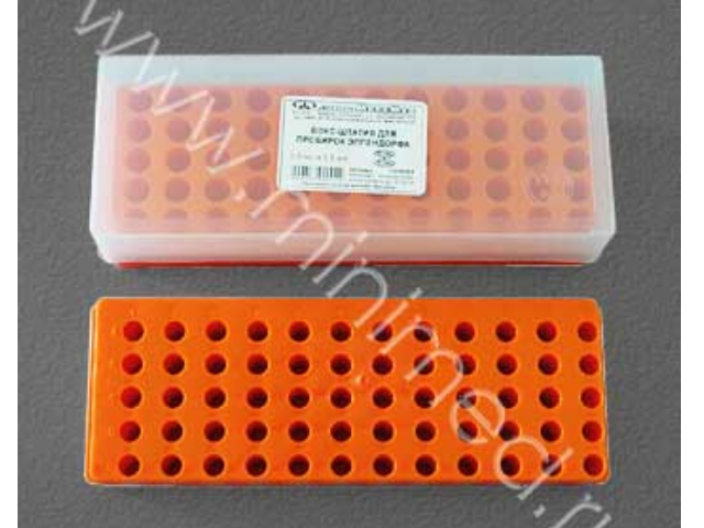 Штатив предназначен для пробирок Эппендорфа. Гнезда расположены с двух сторон корпуса, что позволяет устанавливать в него 60 пробирок объемом 0,5; 1,5 и 2,0 мл. Имеется буквенно цифровая маркировка гнезд. Штатив изготовлен из полипропилена. Автоклавируется при +121°С. В индивидуальной упаковке.