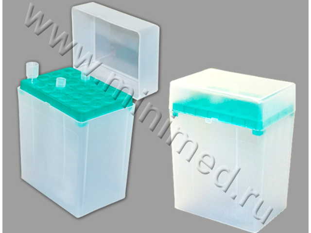 Предназначен для хранения наконечников к дозаторам. Снабжен прозрачной крышкой, предохраняющей наконечники от загрязнения. Изготовлен из полипропилена. Автоклавируется при температуре +121°C. Подходит для наконечников арт. 12001385