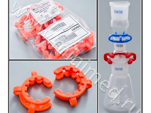 Предназначен для фиксирования стеклянных конических переходников с различными конусами в лабораторных установках. Не царапает стекло. Выдерживает автоклавирование. Имеет различные цветовые исполнения.