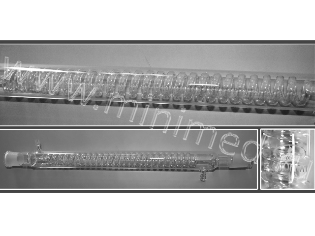 Предназначен для конденсации паров легкокипящих жидкостей при перегонке. Изготовлен из стекла ТС по ГОСТ 21400-75.