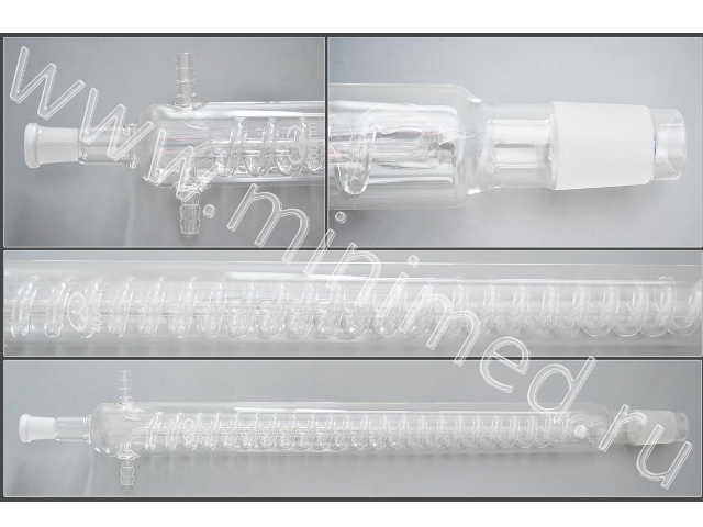 Предназначен для конденсации паров легкокипящих жидкостей при перегонке. Изготовлен из стекла ТС по ГОСТ 21400-75.