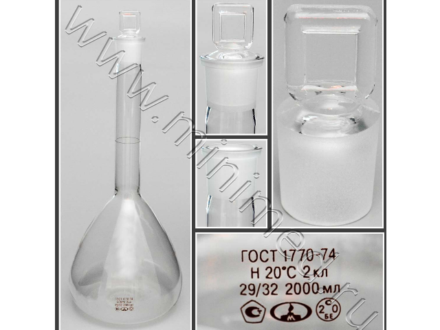 Колба 2-2000-2 мерная, с пришлифованной пробкой 29/32, ТУ 9464-013-52876351-2014, ГОСТ 1770-74, уп.3 шт