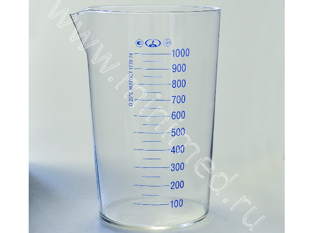 Мензурка 1000 мл ТУ 9464-013-52876351-2014, ГОСТ 1770-74, уп.6 шт