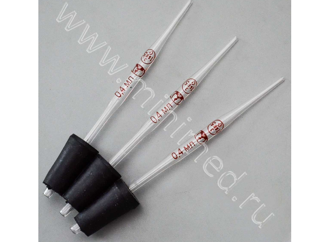 Пипетки вместимости к дозатору Флоринского 0,4+0,04 мл, тип II, с пробкой, ТУ 9464-013-52876351-2014, уп. 20 шт